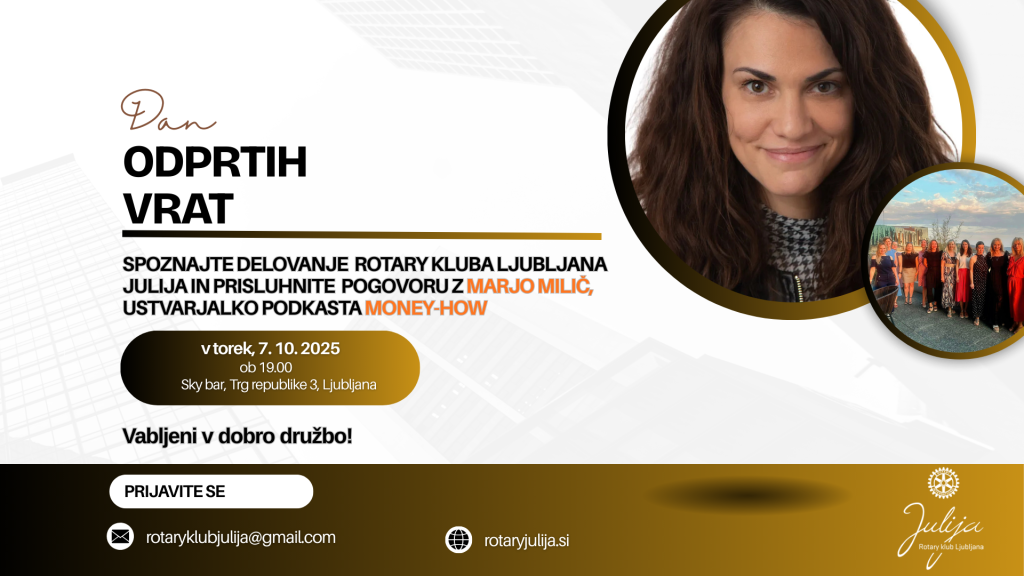 Prosimo, da udeležbo potrdite do ponedeljka, 6. 10. 2025, na rotaryklubjulija@gmail.com ali s spletno prijavo na: https://forms.gle/sSRyMzdfXFHfyeok6