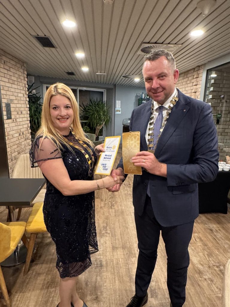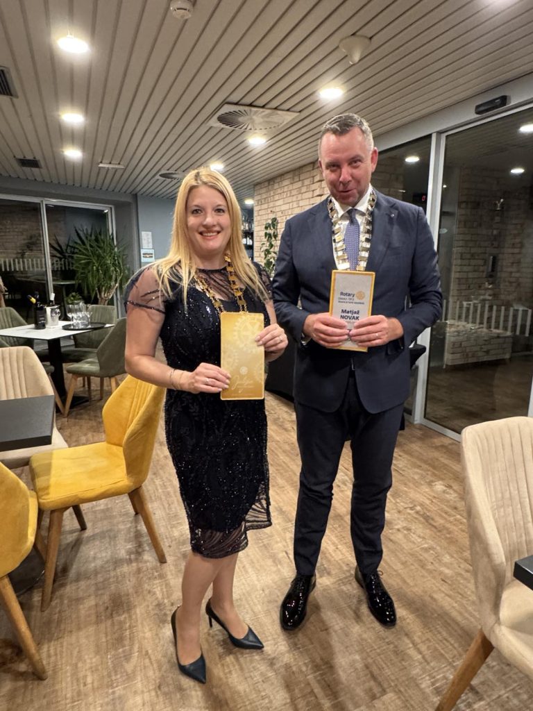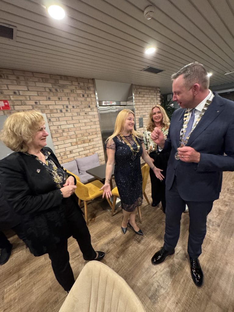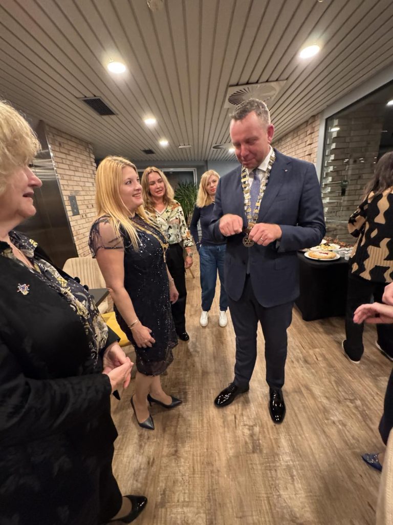 Guverner Matjaž Novak se je Julijam predstavil s toplim in navdihujočim nagovorom. Spregovoril je o svoji poti do guvernerstva in predstavil rotarijski akcijski načrt, ki temelji na ključnih vrednotah Rotaryja – služenju skupnosti, prijateljstvu, vključenosti in trajnostnem učinku. Posebej je izpostavil pomembne usmeritve rotarijskega leta: